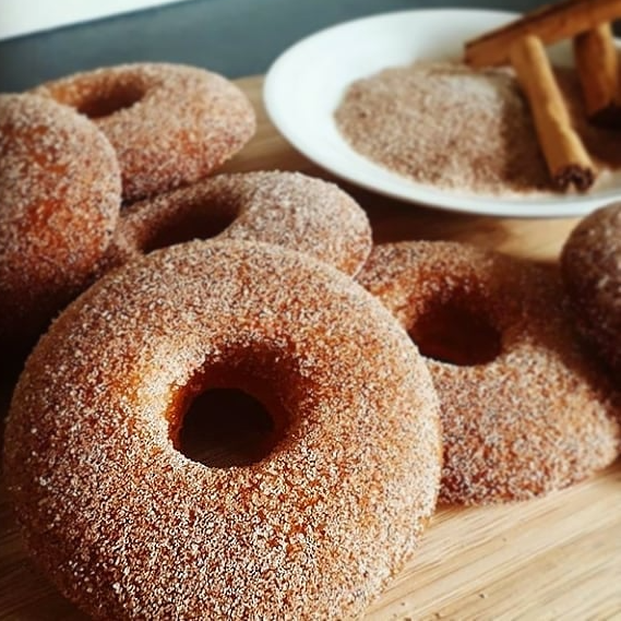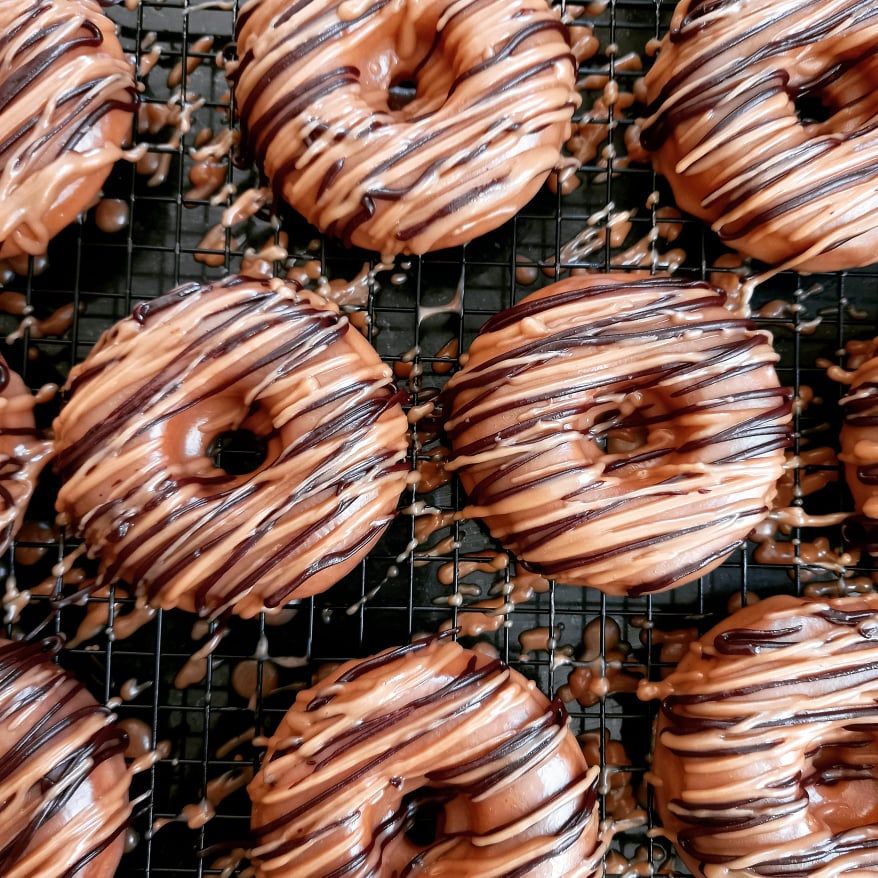 Almond donuts with sugarfree caramel and a dark chocolate drizzle